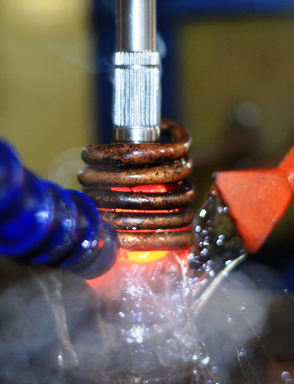 - Tôi tần số ( Inductioning) : Hay còn gọi là tôi cảm ứng hay tôi cao tần. Phương pháp này sử dụng nguyên lý nung nhiệt dựa trên hiện tượng cảm ứng điện từ, dùng sức nóng của dòng điện tạo ra trên bề mặt chi tiết, khi chi tiết đặt trong một từ trường biến thiên. Và chiều sâu lớp bề mặt có dòng điện chạy qua tỷ lệ thuận với tần số f. Do nhiệt độ chỉ tác động lên lớp bề mặt mỏng trong thời gian rất ngắn đã làm nguội nên trong lõi vẫn dẻo dai và độ cứng thấp. Thường ứng dụng cho thép cacbon trung bình.